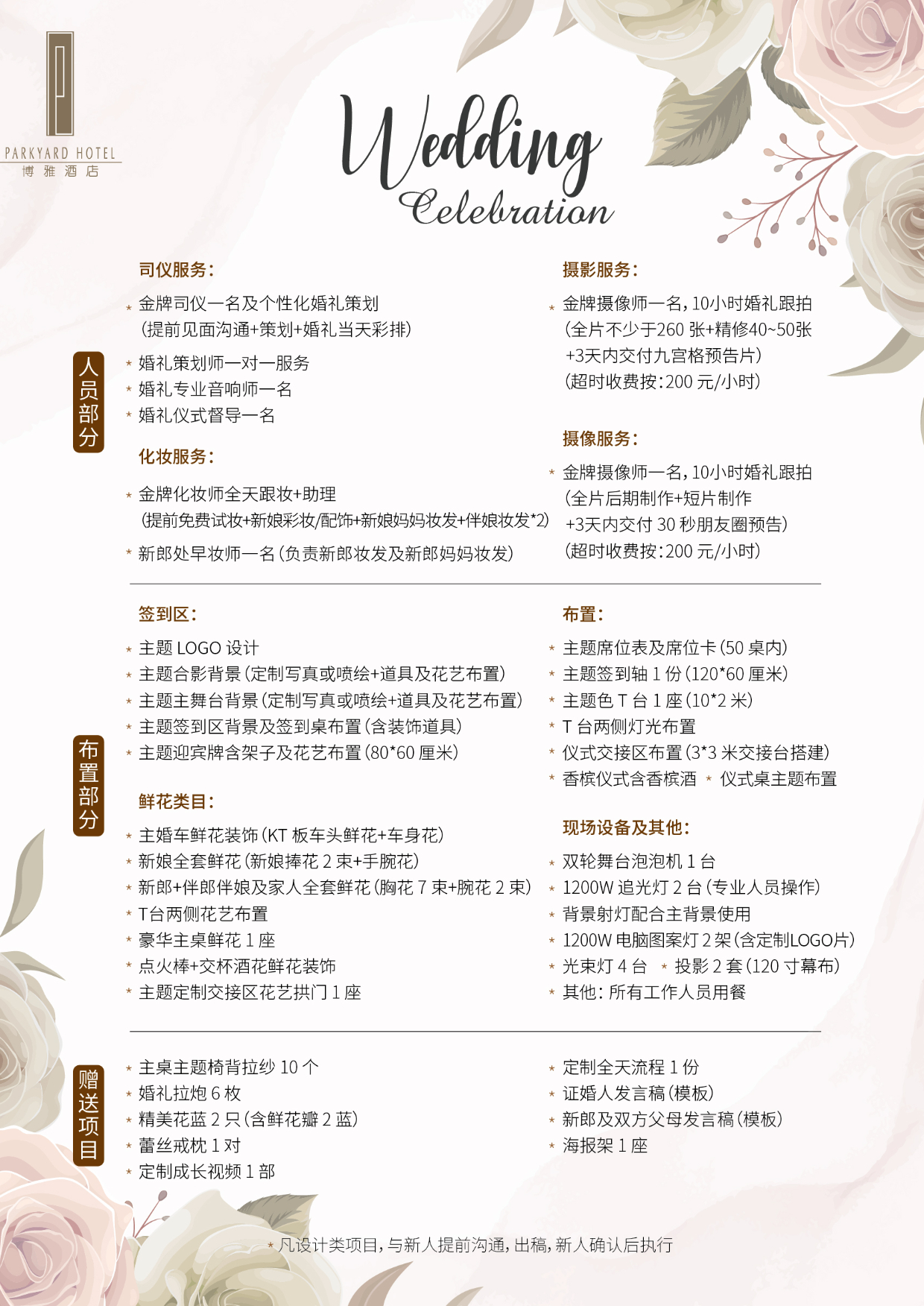 無論是青睞一站式婚禮的新人亦或樂衷于DIY個性化婚禮的佳偶,博雅酒店總有一款婚宴產(chǎn)品能滿足您獨一無二的選擇。